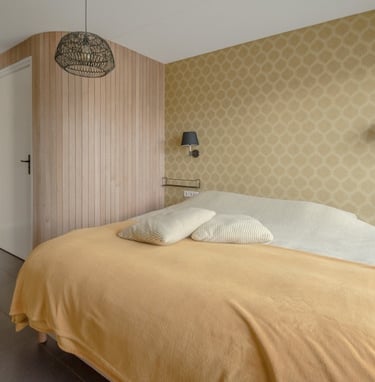 Vier gastenkamers voor 2 personen (3 kamers met een 2-persoonsbed, 1 kamer met twee 1-persoonsbedden). Eén extra kinderbedje is mogelijk.